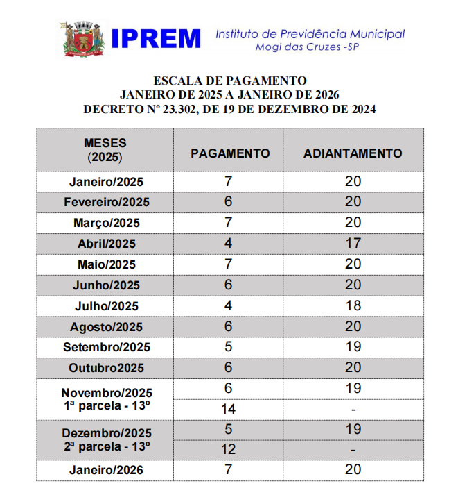 Confira a escala de pagamento de janeiro de 2025 a janeiro de 2026